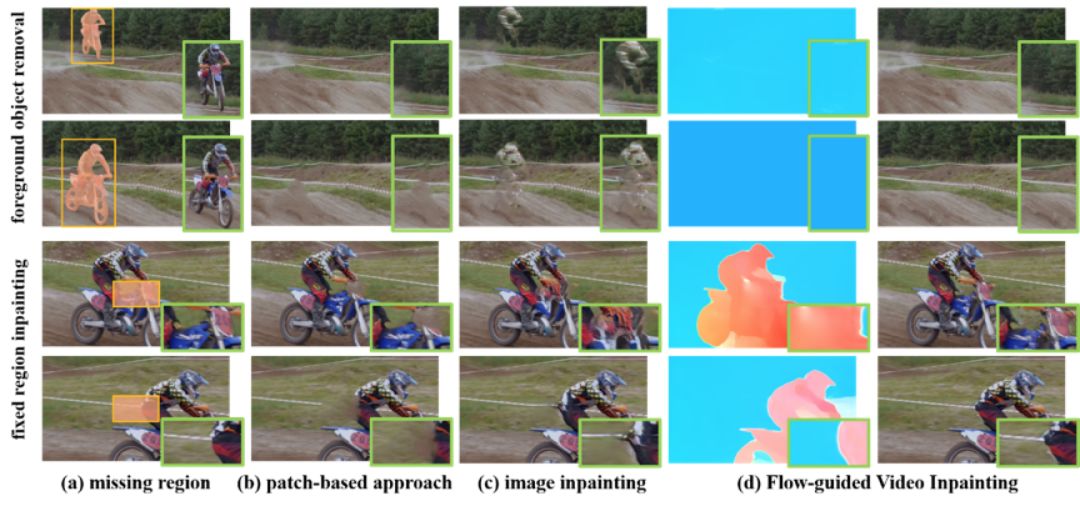 本文致力于解决这三个问题,同时尽可能保证视频的清晰度。在研究中发现,保证视频的时序一致性,对于视频修复任务来说非常重要,这不仅仅保证了修复后的视频能够有良好的观看体验,同时还帮助从视频本身来抽取真实的像素块来实现更加高效地修复。