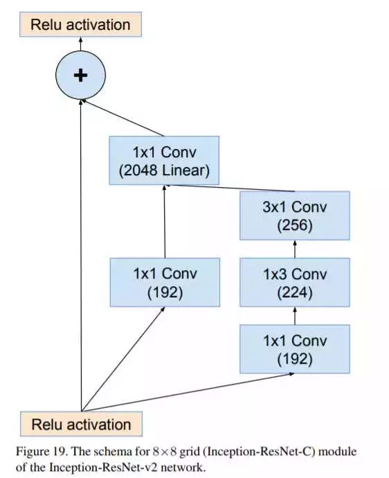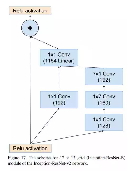 可见,对每个Inception-resnet模块而言,综合了之前版本的Inception模块版本和ResNet的残差单元。除此之外,Google还优化了一个性能与Inception-ResNet-v2相仿的Inception-v4版本,不多讨论,可以自行看论文,对每个Inception模块的优化情况。