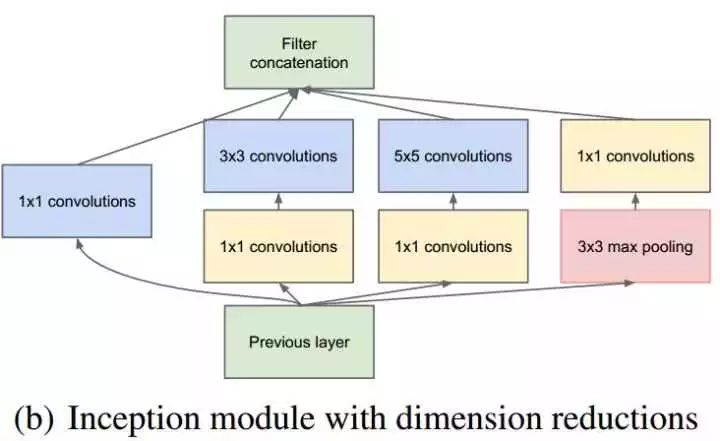 如果previous layer输出的feature map为100x100x128,假设naive版本的5x5卷积核共有256个,需要的参数就为128x5x5x256个。假设,在进行5x5的卷积之前,先进行一次1x1的卷积,那么参数量可以大大降低。假设1x1的卷积核共有32个,5x5的卷积核依然有256个,那么需要的参数量为 128x1x1x32+32x5x5x256,为前一种方法的0.255倍。注意到,这里的1x1卷积是被拿来进行channel维度的整合(降维),而在之前VGG中提到的只是为了引入非线性,毫无疑问,这里不仅降低了计算量,并且增加了非线性,增强了网络的表达能力,是一举两得的事情。