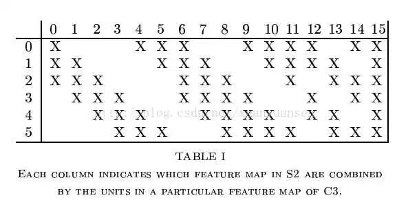 LeNet有一个很有趣的地方,就是S2层与C3层的连接方式。在原文里,这个方式称为“Locally Connect”,学习了CNN很久之后的一天,在回顾CNN原理的时候发现了这种神奇的连接方式: