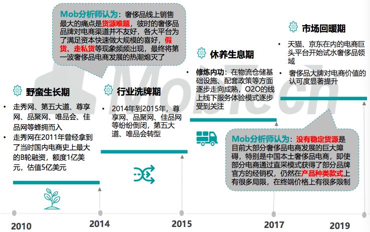 奢侈品电商十年变迁之路,是从残酷厮杀到初现芳华的涅槃之路,在发展初期两 三年的野蛮生长之后快速跌入资本寒冬,众多平台纷纷倒闭,从17年开始行业逐 步回暖,综合电商平台纷纷加码奢侈品行业,带来一波投资热潮。