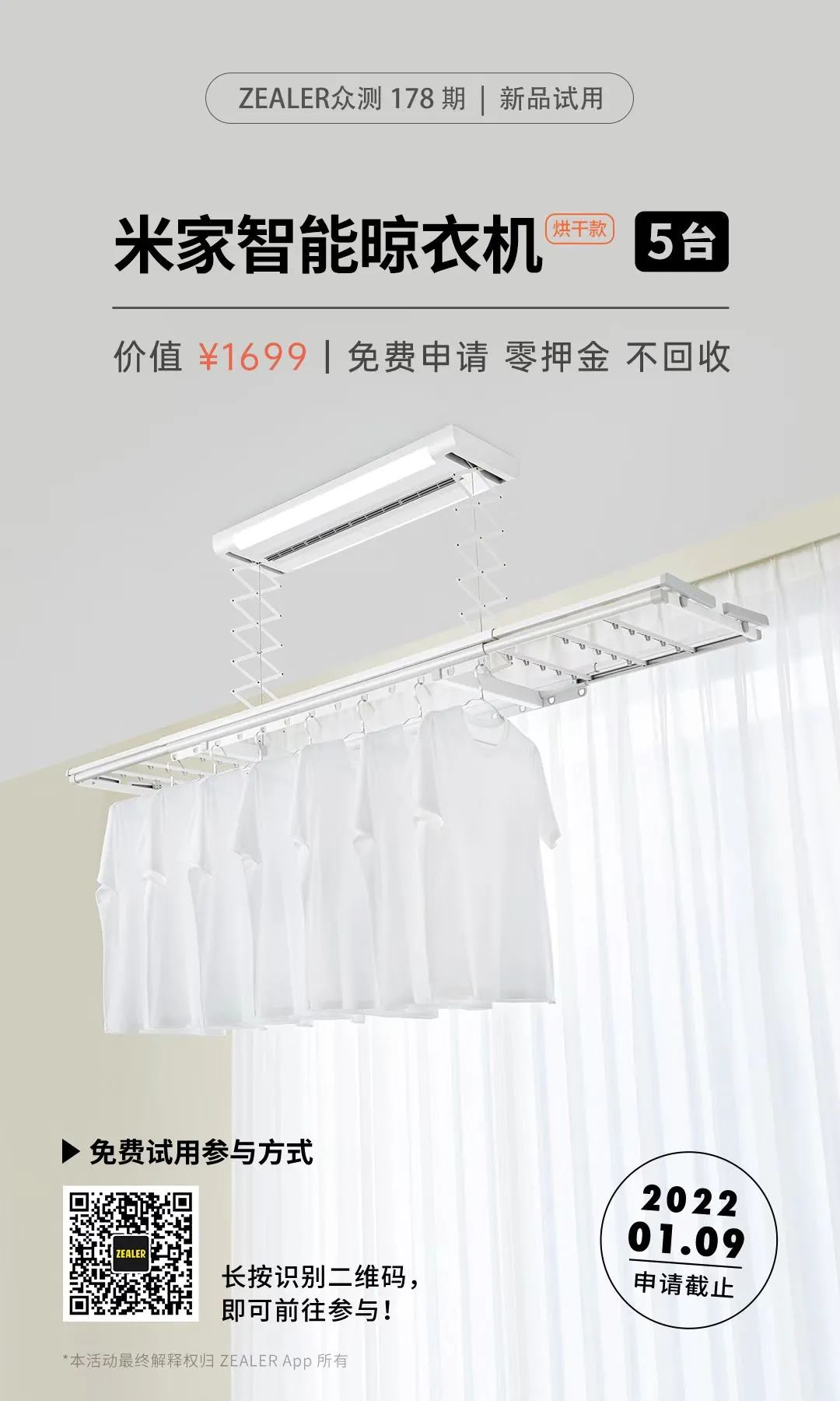 米家智能晾衣机烘干款已上线 ZEALER 众测,扫描图片中二维码或点击文章底部「阅读原文」即可前往参与,0 元免费体验!