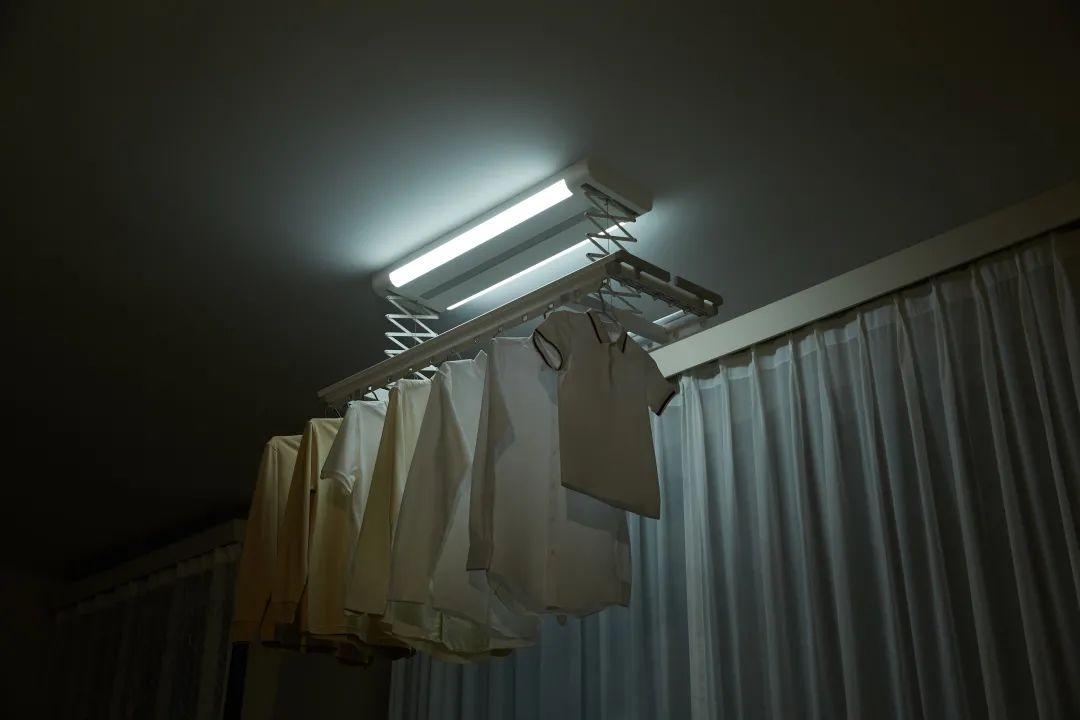 除了是个晾衣杆,还可为你提供照明。机身双侧布有 LED 照明灯,兼顾下方和侧向照明,日常使用避免衣物遮挡灯光照明效果。同时额外提供月光模式,亮度更低不刺眼。