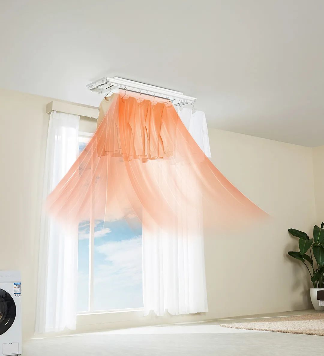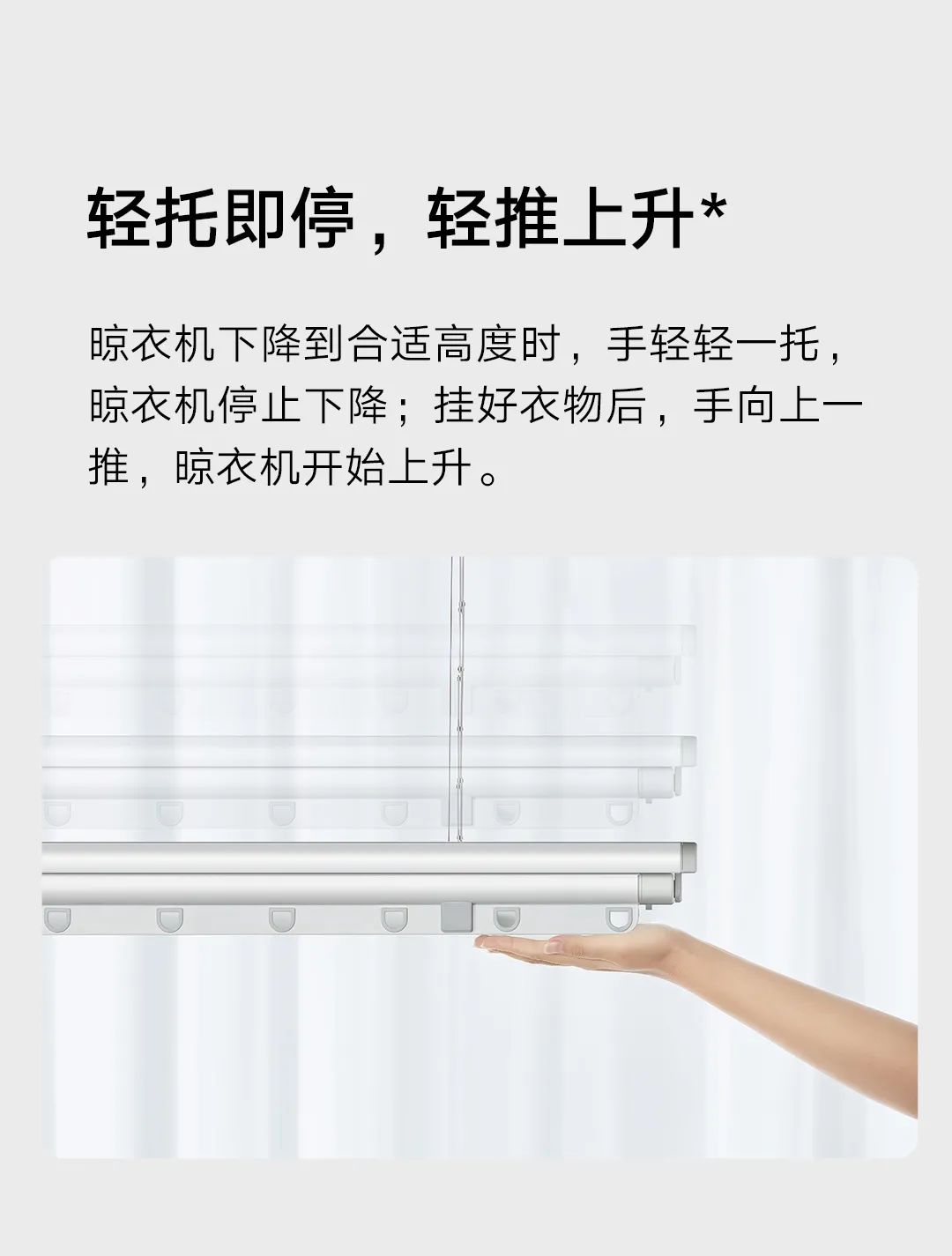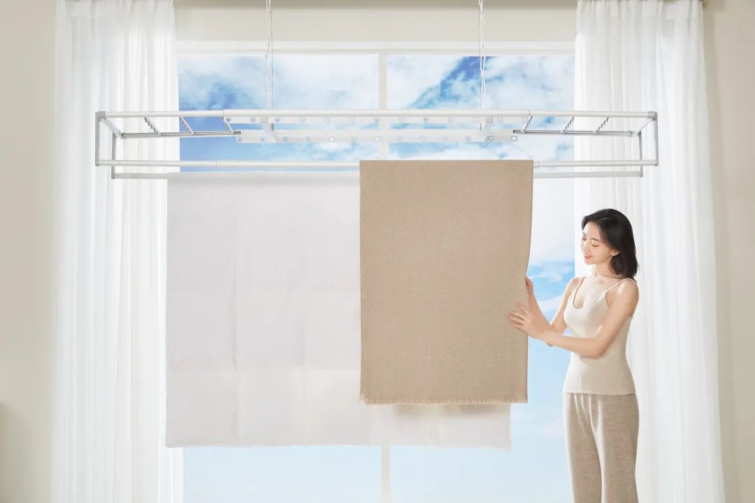 除了快速烘干 18 件衣物外,阳光好的时候,你依然可以将它作为常规晾衣机使用。