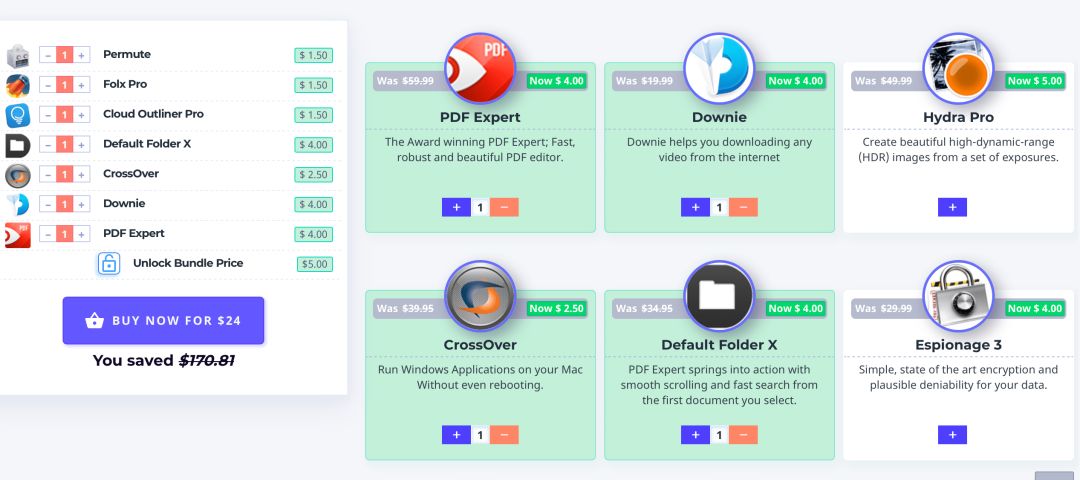 BundleHunt 最新推出的 Mac App Bundle 采用了最近比较流行的 Pay What You Want 模式,解锁价格为 5 美元。简单来说,你可以随意挑选 Bundle 中包含的 App,而最终支付的价格则是选择的 App 价格总和再加上 5 美元。