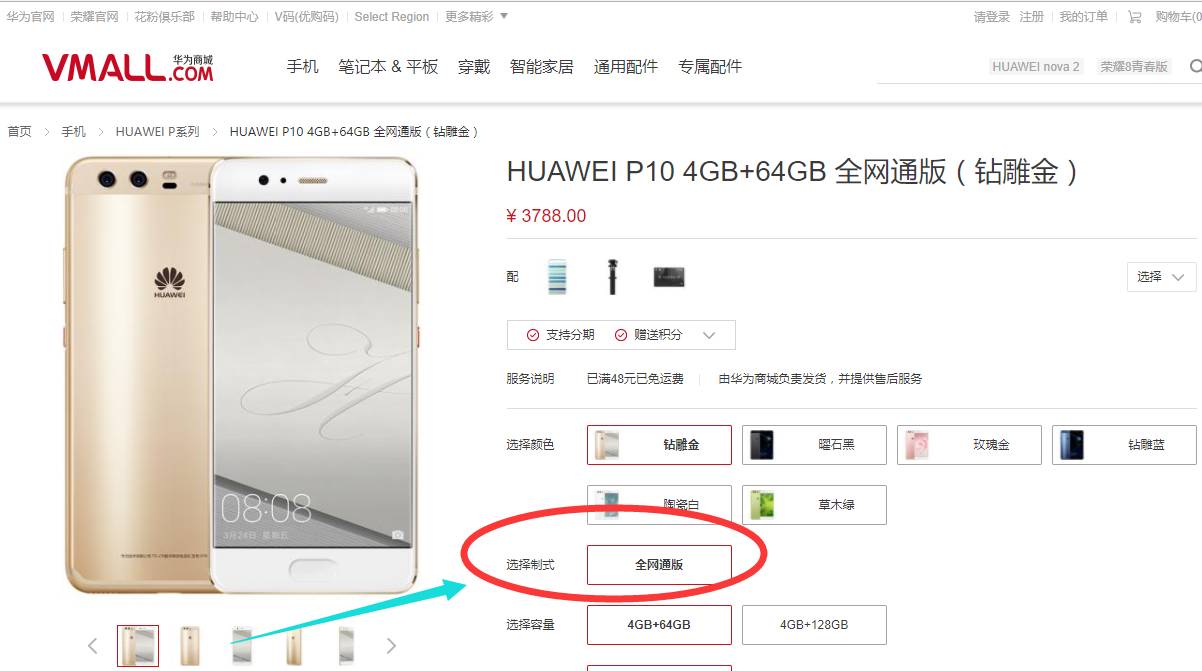 即使是推出了移动4G+版本的这些手机厂商,在其官方商城上销售的也全部是全网通手机,没有提供移动4G+版本选项。