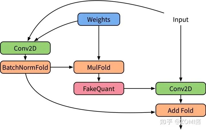 7) ConvMul ( ):控制流freeze,模型开始训练的时候会在fold conv卷积的输出除以correction校正因子,这样的操作是为了让模型直接去学习正常的BN操作(根据当前的batch进行学习);在学习到一定程度之后,冻结当前的BN不再更新全局。