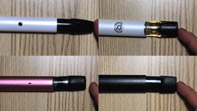 铝合金烟杆,比其他5根电子烟都细、都长。烟杆圆润,椭圆形切面,饺子重量。值得一提的是,烟嘴相较另外几款电子烟来说窄一些,口含起来更舒服。