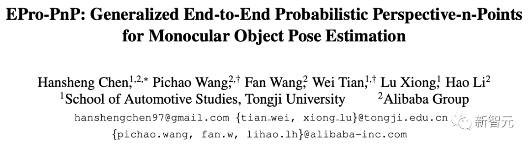 这篇论文,便针对单目图像中的物体6自由度位姿估计问题,提出了一种通用的概率n点透视(PnP)算法——EPro-PnP(end-to-end probabilistic PnP)。