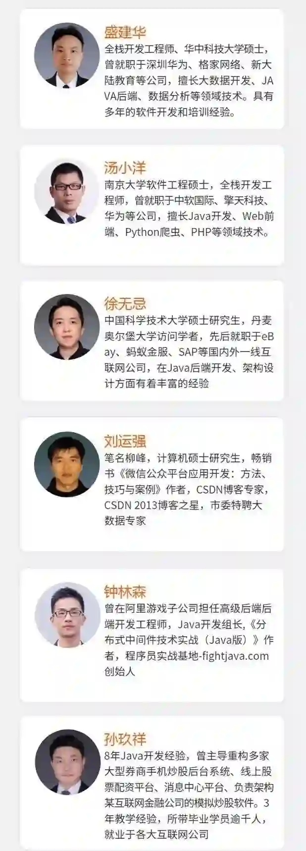 为了使这门课程能够使小白顺利上手,并使项目最贴近企业的真实开发场景,CSDN 邀请到了 6 位在 Java 领域的一线工程师一起合力创作此课程。