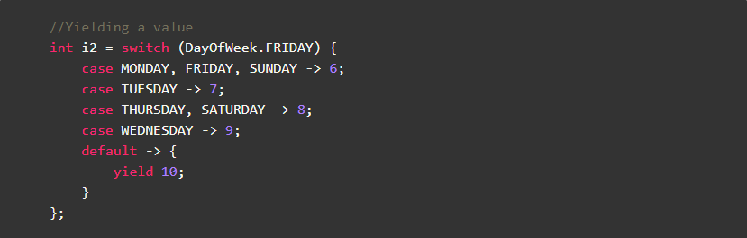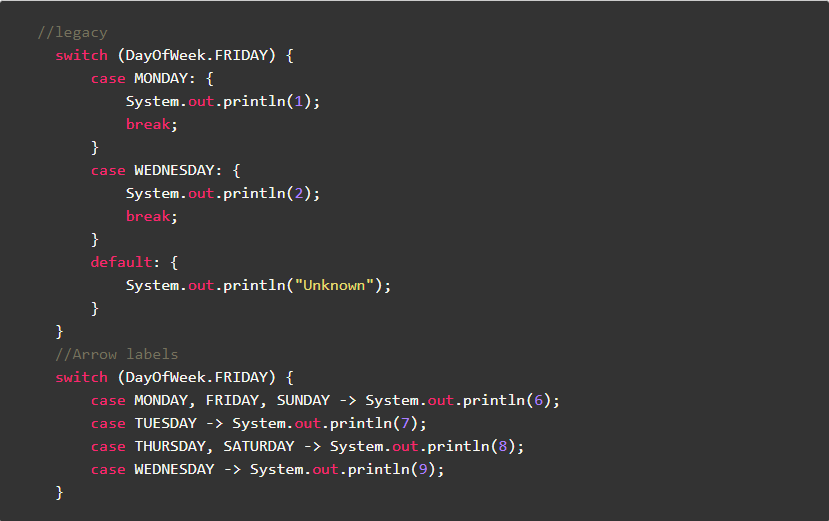 接入了 "->" switch 箭头,不需要写那么多 break 啦,代码如下: