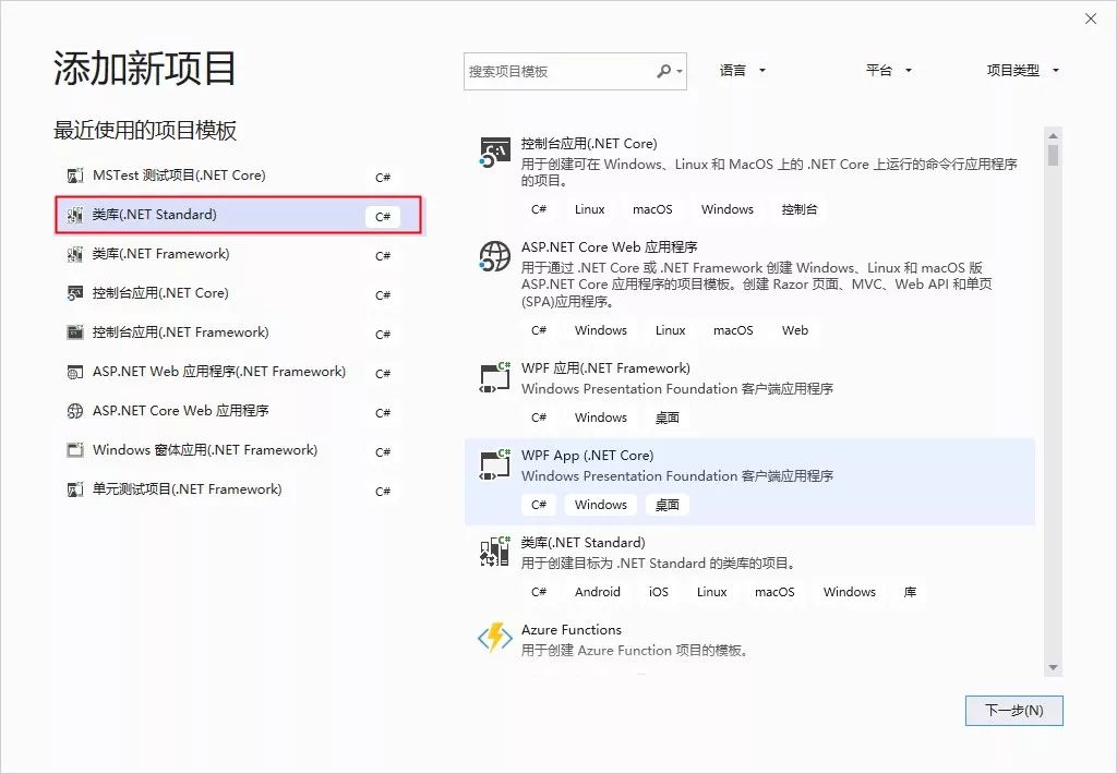 在这个示例代码中,我们使用了.NET Standard 2.0 Class Library Project。目标框架同时支持.NET Framework 4.5.1和.NET Standard 2.0