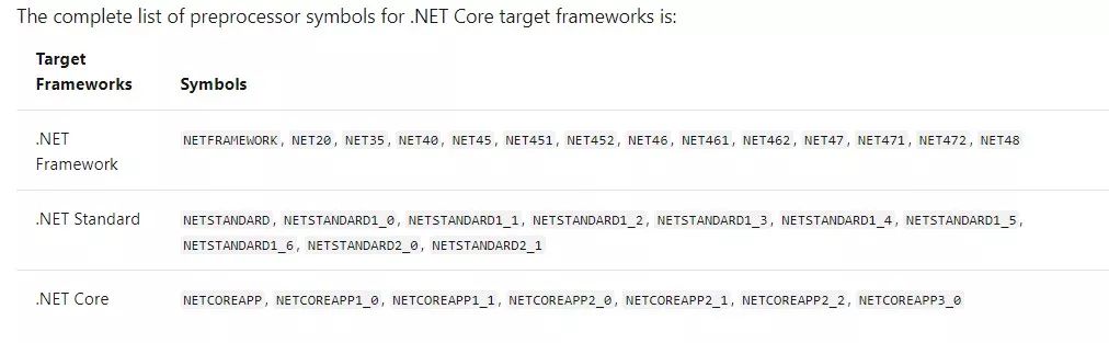 如果同一块业务逻辑,在.NET Framework和.NET Core实现不一样,我们在同一个代码中,如果通过预处理指令实现: