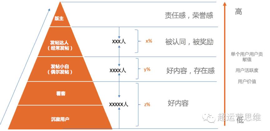 假如你是做社区产品的用户画像,那么通过用户等级数据、用户行为数据和用户贡献等数据进行分析并建立相应的用户模型,比如某K12领域社区用户分布和需求模型: