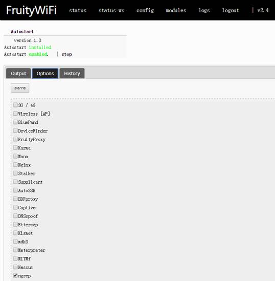 1、Autostart,启用FriutyWifi时自动开启相对应的模块。