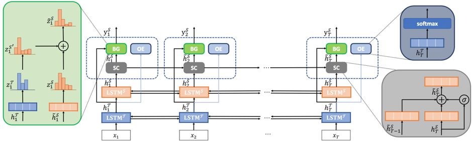 为了充分利用评论目标的边界信息,我们提出了一个 Boundary Guidance (BG) 组件显式地把下层 RNN 提取的边界信息加入到 E2E-ABSA 的序列决策中。在序列预测过程中,我们还通过 Sentiment Consistency (SC) 组件,来加强当前词和过去一个时刻的词的关系,从而缓解同一个评论目标短语内情感标签不一致的问题。