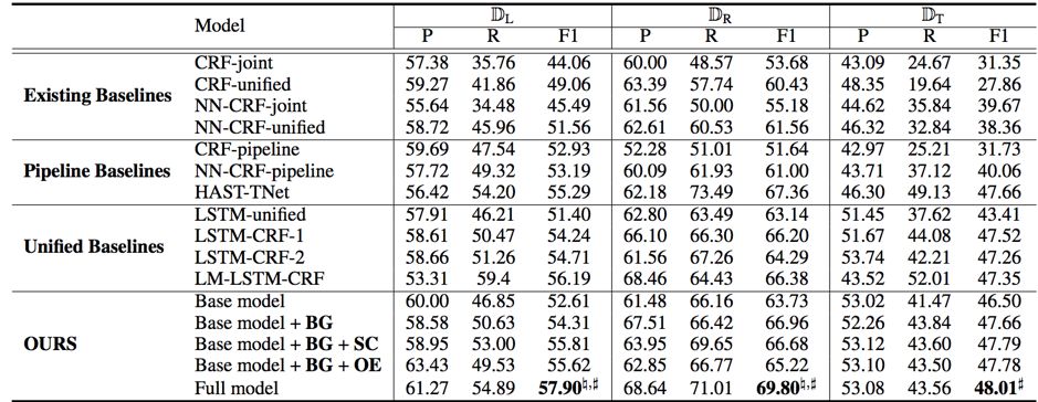 为了更加具有说服力,我们将两种深度学习的方法 Hier-Joint 与 RNSCN 扩展成了相同的堆叠式 base 模型 Hier-Joint+,RNSCN+。可以发现,我们的模型仍然显著的超越了扩展模型。