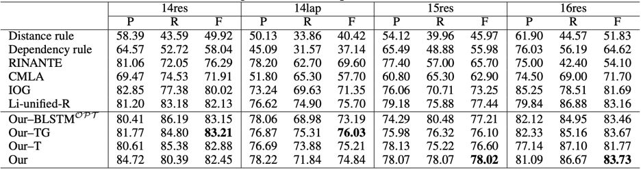 的模块化系统也仅进行 aspect term extraction 和 sentiment classification,未提取 opinion term。