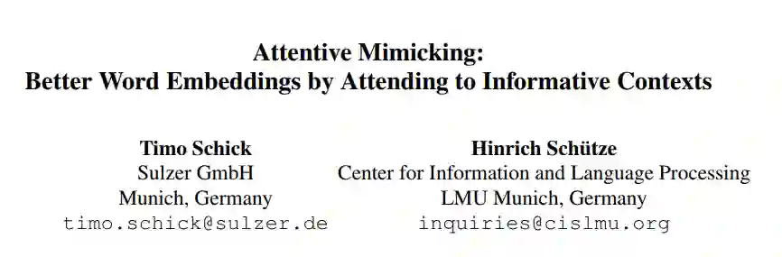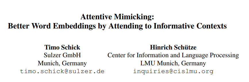 论文标题:Attentive Mimicking: Better Word Embeddings by Attending to Informative Contexts