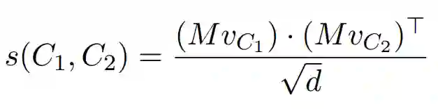 我们考虑一个词w,其中w的十分之六的上下文中包含涉及体育的单词,由于这种高度相关的上下文,因此可以合理地假设与w来自同一域,同时,与体育无关的剩下的十分之四的上下文信息较少。我们将两个上下文的相似性定义为: