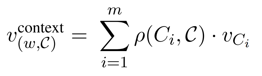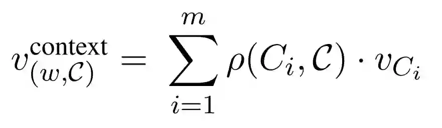 FCM同样关注一个词的所有上下文,但通常只有很少的上下文实际上适合推断某个单词的含义。引入注意力模仿(AM)来解决这个问题:我们允许模型根据上下文的"可靠性"的度量来为上下文分配不同的权重。为此令C = {C1,...,Cm},其中每个Ci是单词组。我们将FCM的上下文嵌入替换为加权嵌入