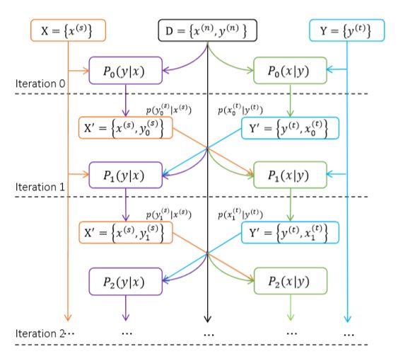 联合训练(Joint Training):这个方法可以认为是从源语言到目标语言翻译(Source to Target)的学习与从目标语言到源语言翻译(Target to Source)的学习的结合。中英翻译和英中翻译都使用初始并行数据来训练,在每次训练的迭代过程中,中英翻译系统将中文句子翻译成英文句子,从而获得新的句对,而该句对又可以反过来补充到英中翻译系统的数据集中。同理,这个过程也可以反向进行。这样双向融合不仅使得两个系统的训练数据集大大增加,而且准确率也大幅提高。