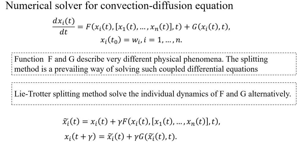 但在常微分方程数值解领域里,对此早已有非常深入的研究,且相关研究早已有上百年的历史,而 Lie-Trotter splitting scheme 事实上是一种早已被淘汰掉的数值解法。相较而言,Strang splitting 是一种比较好的数值解。Lie splitting 是一阶的近似方法,而 Strang splitting 是一种二阶的近似方法。在实际中去解常微分方程的时候, 比起无人问津的 Lie splitting,用到的都是 Strang splitting。