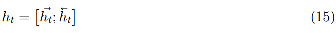 原语句子可以通过 CNN 或全连接网络等某个模型编码为一个向量,机器翻译通常会选择 RNN 作为编码器。Bahdanau[1] 等人最开始使用双向深度 RNN 网络,该模型使用两条深度单向 RNN 构建模型,且方向相反的两条 RNN 不会共享参数。第一个前向 RNN 从左到右处理原语句子,而第二条反向的 RNN 由右到左处理原语句子。两个 RNN 编码的隐向量在每一个时间步都会拼接在一起,从而作为双向 RNN 的内部表征: