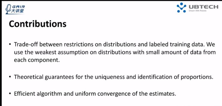 近期,在 GAIR 大讲堂上,优必选悉尼 AI 研究院博士生余席宇分享了他在混合比例估计中新的研究成果,以及其在弱监督学习,迁移学习中的延伸应用。视频回放地址:http://www.mooc.ai/open/course/493