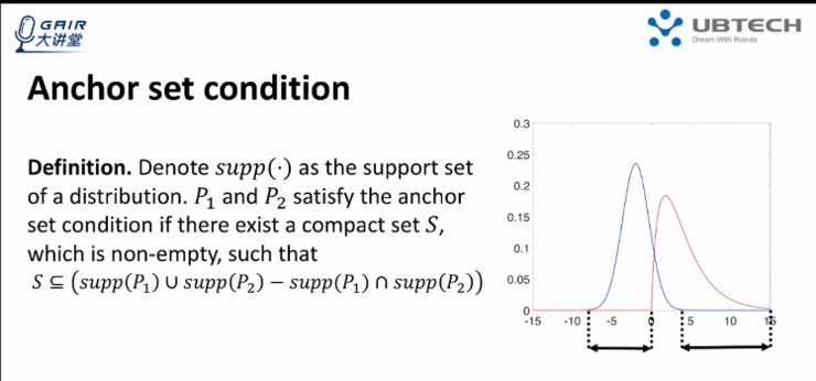 既然不可约的假设不能保证收敛速率,后来的研究者又提出了一种新的假设:Anchor set condition。比如拿两个分布来说,两个分布中一个分布的密度函数不为 0,而另外一个分布的密度函数为 0 的自变量的集合,就叫 Anchor set。