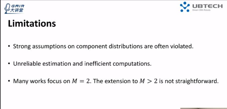 第三个,前面那些方法大多都集中只有两个组成分布的条件下,它对于如果组成分布是多个的情况下的延伸不是那么直接,所以需要寻求另外一种新的方式。