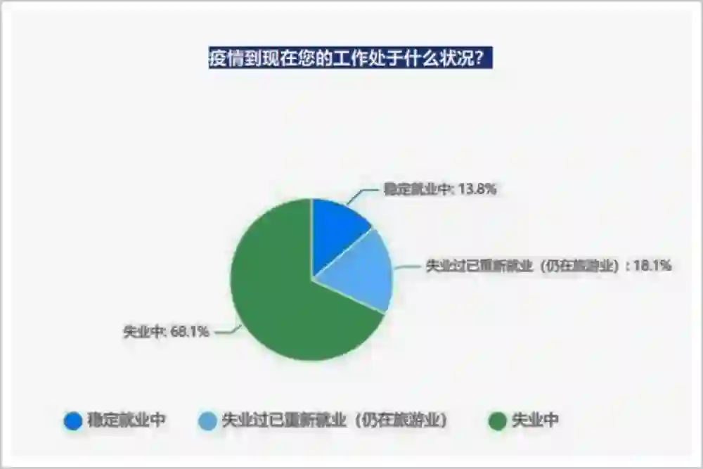 根据调查数据显示,旅游从业者目前稳定就业的仅占13.8%,失业比重高达68.1%。在失业者中,有96%的比例是因为疫情而失去工作,对于他们来说,日常生活开销都捉襟见肘,更不要说房贷、车贷的压力。这使得一部分从业者不得不另谋出路。