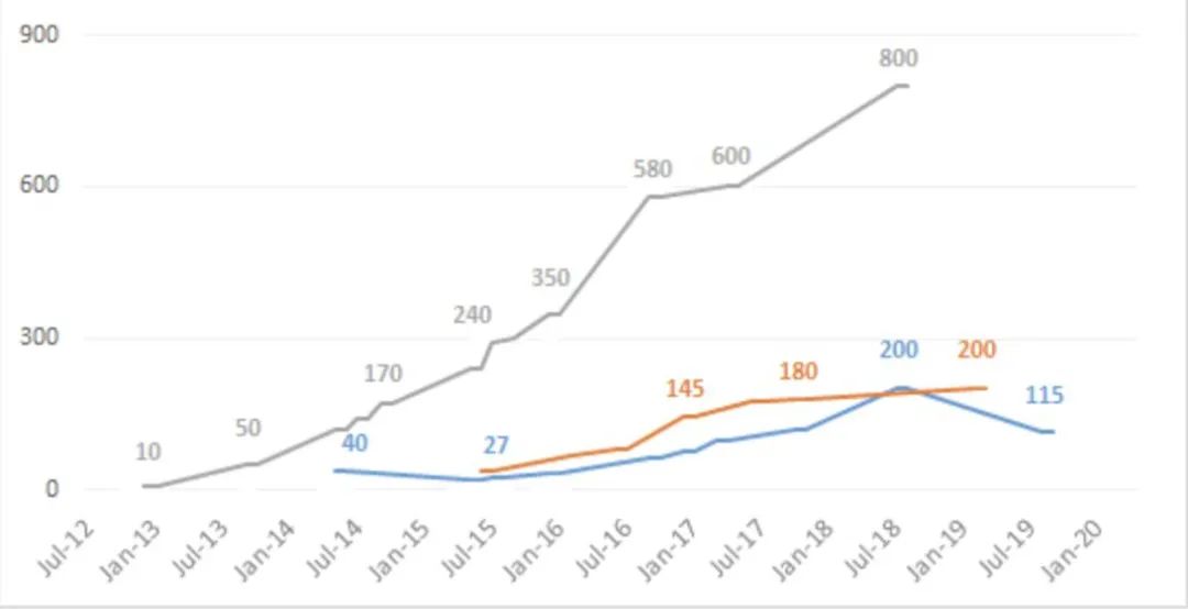 图中黑色柱状为字节跳动的年营收状况,红色的是谷歌,深蓝色的为Facebook,虽然增幅明显,但是与字节跳动的“猛蹿”还是相形见绌,尤其是近几年字节跳动的收入增长,的确令人咋舌。