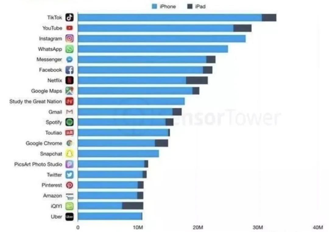 实际上,很多人不太熟悉的TikTok是字节跳动在全球市场炙手可热的“流量收割机”,成为这份成绩单中不容小觑的海外“现金牛”。在今年一季度,TikTok下载量达到了3.15亿次,创下全球App单季下载的新纪录,同时刷新了其2018年第四季度2.057亿次的纪录。仅在今年2月份的下载量,就达到了1.13亿次。