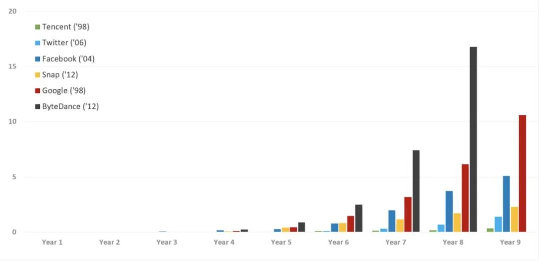 时至2020年5月,已经是第8个年头(北京字节跳动科技有限公司成立于2012年),也是字节跳动的营收增幅超过Twitter、Facebook、Snap和Google的第8年。