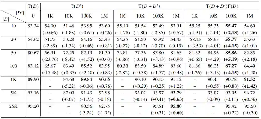 从上图中我们还可以观察到一个有趣的现象:当领域内标注数据 很小的时候,领域内预训练可以显著提升最终的结果。换句话说:领域内预训练可以取得更好的小样本学习效果。