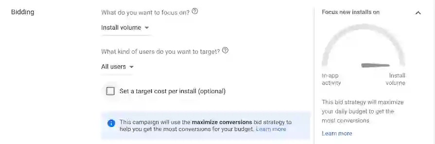 "尽可能提高转化次数 (Maximize Conversions)" 出价策略适用于如下需求: 1. 快速拓展用户群体——发布新游戏、投放季节性广告系列,或宣传应用的新内容,以特定周期内最大化下载量为目标;2. 探索出价——初用 AC 或者进入新市场时,用于探索适合的 CPI 出价范围。您只需输入预算,Maximize Conversions 会在短时间内,通过自动出价全力提升最大规模的安装量。了解更多,或向客户经理咨询使用吧。