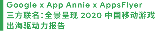 每年一度的 Think Games 谷歌游戏出海峰会如期与大家见面——今年转阵线上,为期三天带来更丰富的干货内容: 用新洞察、新工具、新实践,从 "游戏创新、推广和运营",到 "游戏拓展和变现",为中国移动游戏出海出谋献策,解锁新常态下的新增长。《混合玩法游戏玩家研究》报告和 Google 联合 App Annie、AppsFlyer 推出的《2020 中国移动游戏出海驱动力报告》在本届峰会上重磅发布,帮助手游出海紧跟趋势,洞察玩家,欢迎于下文中下载阅览。此外,我们还详解了配合应用不同生命周期的谷歌解决方案,助力精准挖掘用户价值;也邀请出海先驱 FunPlus 趣加公司,分享在打造爆款、布局新市场、以及团队运作方面的心得与思考,浏览回顾文章一探究竟。
