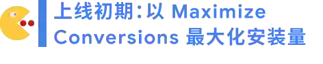 在随后的 "预约 & 上线爆发期",4399 推荐采用的是 tCPI (俗称 AC 1.0) + Maximize Conversions 出价策略,完成预注册的巩固,带来产品最大限度的曝光和最快速的起量,对全渠道的转化率都会有一定提升。建议尽早搭建 AC 1.0 的广告系列模型 (例如在游戏开放下载时)。