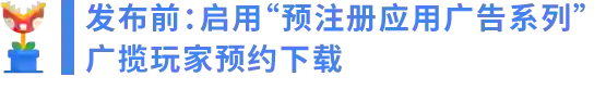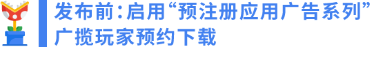 预注册广告不仅可以在 Google Play 上进行展示,也能覆盖到谷歌的其他渠道: 包括 YouTube 和展示广告网络,获取更高品牌知名度、覆盖更广泛的人群。广告主也可通过运营预注册活动,来进一步提升转化率和忠诚度,比如向预注册玩家提供专属特权或奖励——如首日安装可获得免费礼包、解锁特定人物等。广告和运营活动相辅相成,在预注册阶段累积核心用户,为游戏正式发布首日到首周的冲量和冲榜,提供强有力的支持。联络客户经理开通使用,或了解更多 "预注册应用广告系列"。
