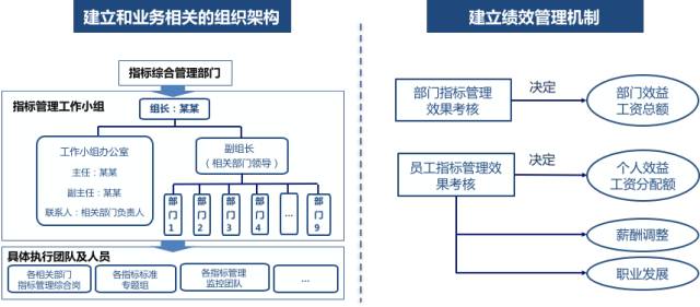人员的参与是指标管理的基础。首先,为实现指标的综合管理,企业需要建立和业务紧密相关的指标管理的组织架构,将指标的管理职责分解到与指标相关业务对应的岗位;其次,为促成指标管理的落地,企业需要让指标的管理效果与每名员工的职责和个人绩效关联起来,并采取有效的激励措施。