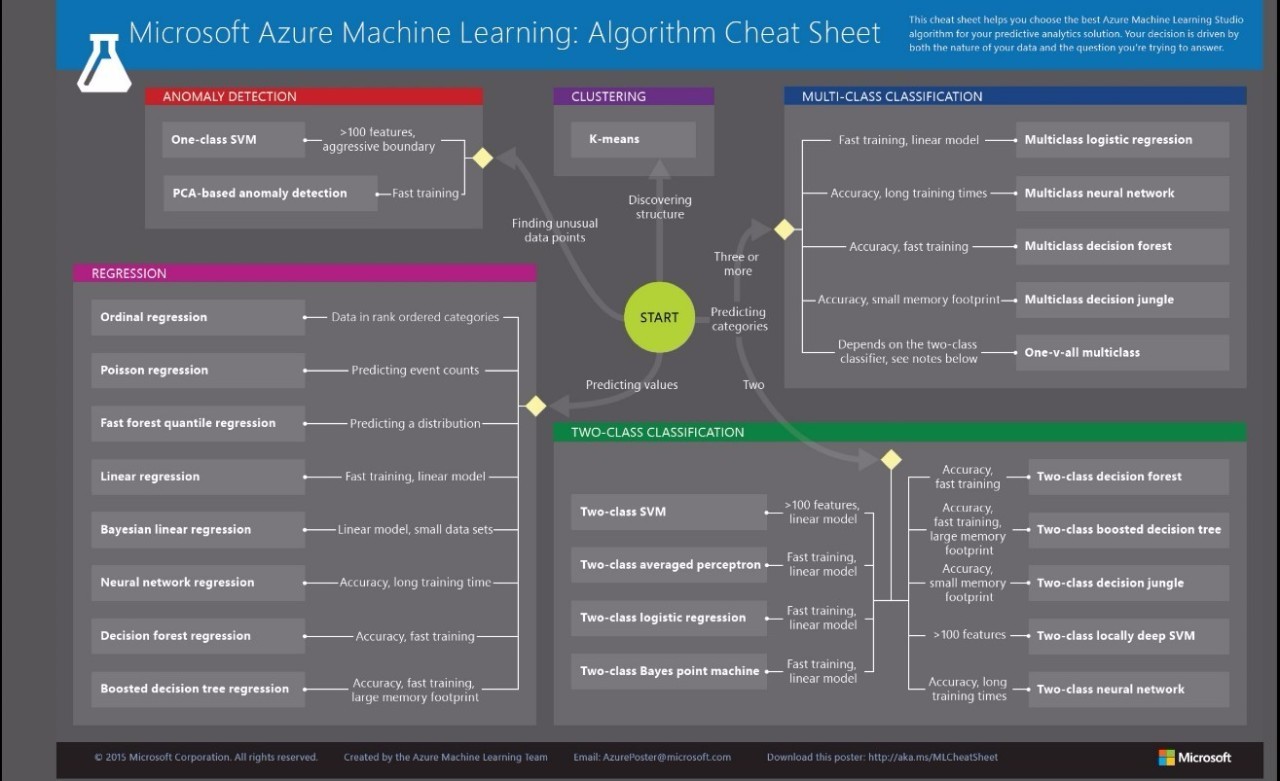 Azure Machine Learning cheat-sheet可以帮助你探索这些算法。