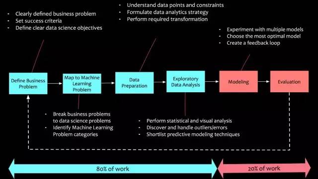 通常,建模和部署部分只占全部工作的20%,剩余的 80%的工作是对数据的研究以及深度的了解。
