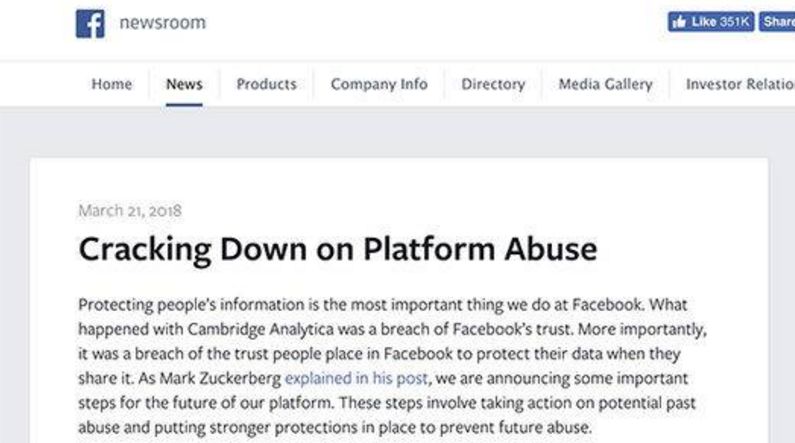 他表示 Facebook 需要向被剑桥分析获取了数据的用户进行告知,此外还要做这些事情:
