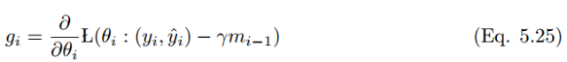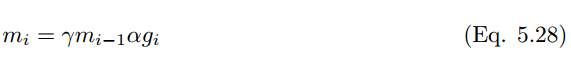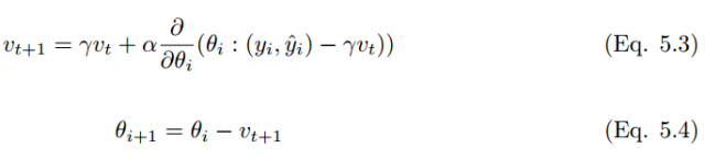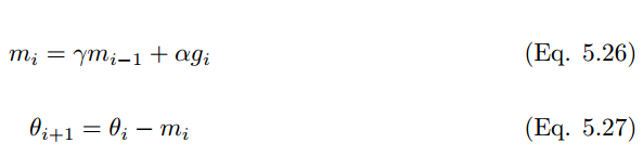 其中 γ 和动量项相同。实践中,该值通常设为 0.9 左右。根据等式 3.13,SGD 更新的等式为: