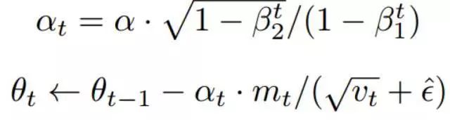 移动均值的初始值和 beta1、beta2 值接近于 1(推荐值),因此矩估计的偏差接近于 0。该偏差通过首先计算带偏差的估计而后计算偏差修正后的估计而得到提升。