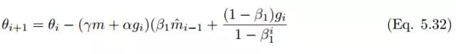 我们需要修改动量规则以获得 Nadam 优化器。因此将上述公式扩展为: