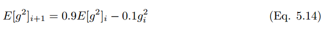AdaDelta 使用最近历史梯度值缩放学习率,并且和经典的动量算法相似,累积历史的更新以加速学习。AdaDelta 可以有效地克服 Adagrad 学习率收敛至零的缺点。AdaDelta 将累积过去平方梯度的范围限制在固定窗口 w 内,取代了经典动量算法累积所有历史梯度值的做法。在时间 t 运行的平均值计算 E[g^2](t) 依赖于过去的平均值和当前的梯度值。因此,该平均值计算可以表示为: