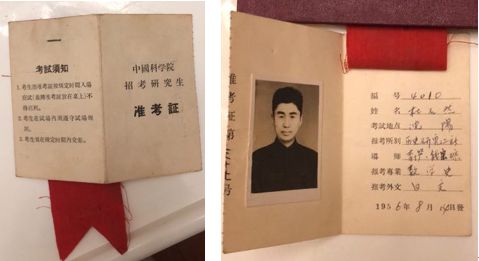 图2. 中国科学院招考首届数学史研究生的准考证(1956,杜石然提供)