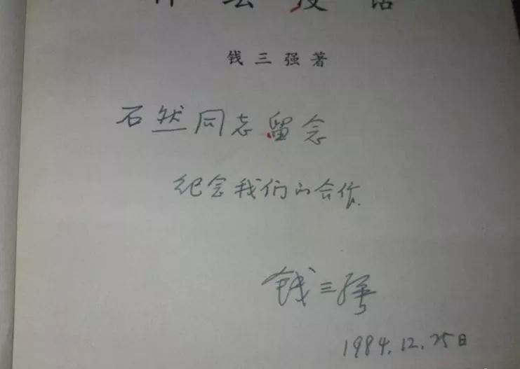 题词中钱老亲切地写道“纪念我们的合作”,我想是指他给中央首长讲课的事,那是1980年。